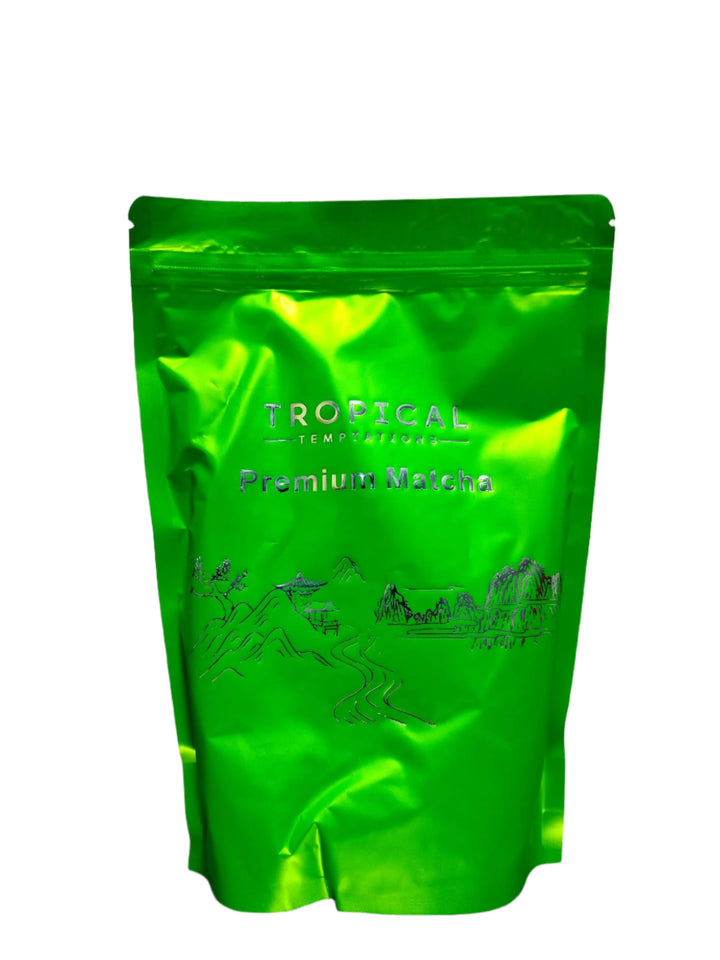 Embrace the harmony of tradition and tropical delight with Tropical Temptations Premium Matcha. Order now to elevate your tea experience.